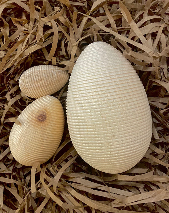 Diese wunderschönen Holz Eier entstehen in einer Schnitzerei in Südtirol. Jedes Holz Ei ist ein kleines Unikat und fällt anders aus. Die Eier lassen sich wunderbar in einem Nest oder Schale dekorieren. Mit den kleinen Fräsungen oben und unten entsteht eine ganz wundervolle Optik---besonders schön sehen die Eier in einem Korb in unterschiedlichen Größen und Optik aus.